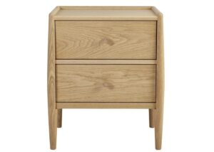 The Ercol Winslow Dressing Table is a striking statement piece, featuring elegant tapered oak legs and a beautiful full-width mirror. With three vanity drawers, it offers generous storage for jewellery, cosmetics, and other essentials, combining functionality with timeless style. Convenient edging prevents items from rolling off the table surface. Finished in a modern matte lacquer, it boasts traditional dovetail joints on the drawers for added durability and strength.