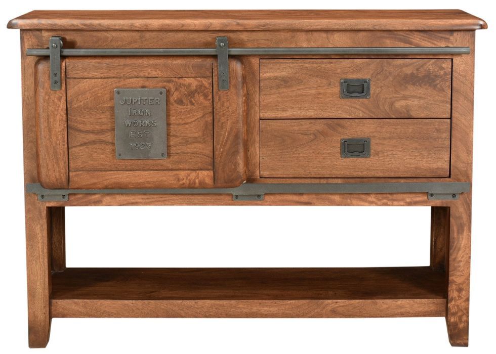 Elevate your space with the Ironwork Dark Rustic Console Table where timeless design meets everyday functionality. Featuring a smooth sliding door that reveals a hidden cabinet and two spacious drawers, this piece offers the perfect blend of style and storage. The open lower shelf provides extra room for décor or essentials, making it an ideal statement piece for your entryway, living room, or hallway.