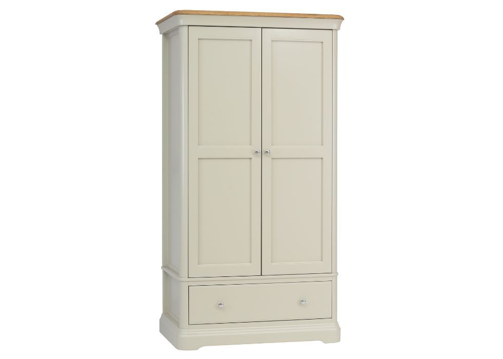 The Milburn 1-Drawer Double Wardrobe features a full-length hanging rail, perfect for storing shirts, coats, and dresses. A convenient drawer at the base provides additional space, ideal for keeping shoes or other accessories neatly organised.