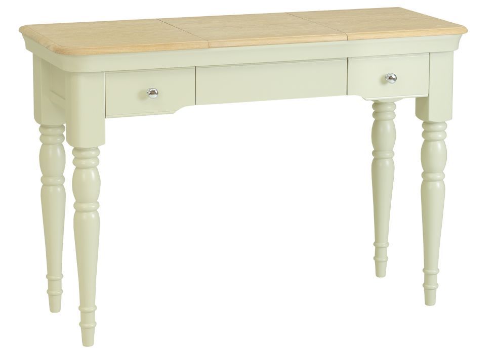 The Milburn Compact Dressing Table features a convenient fold-out mirror built into the top. On either side of the mirror, there’s ample surface space for getting ready, while two drawers beneath the tabletop provide handy storage for your essentials.