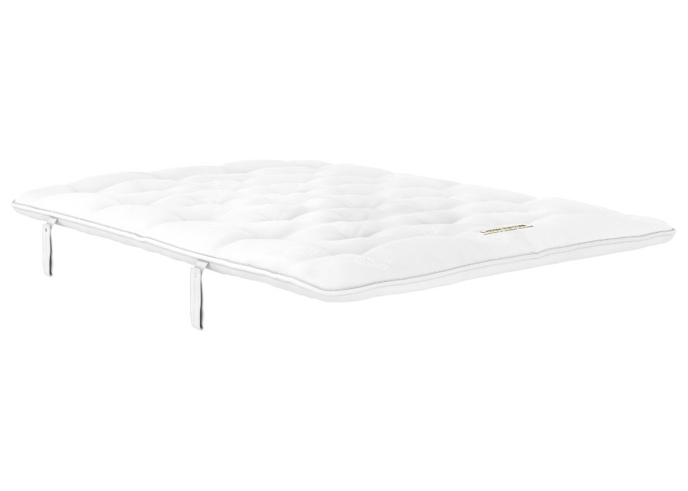 Experience exceptional comfort with the Relyon Mattress Enhancer, designed to support perfect sleep all year round. Layers of West Country wool deliver cosy winter warmth and cool, breathable comfort in summer, while a soft cotton layer adds extra cushioning and airflow. Hand-tufted with wool tufts and finished in a smooth damask cover, it creates a clean, refined sleep surface. The M-Pure treated cover is naturally fire-retardant, sustainable, and eco-friendly. With a double-sided design for extended use and secure straps to keep it firmly in place, this enhancer offers an effortless upgrade to your mattress.