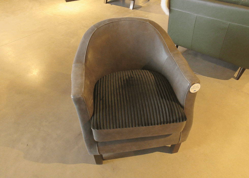 Make enquiry about this itemLeather and Fabric accent chair in grey leather and Green Fabric